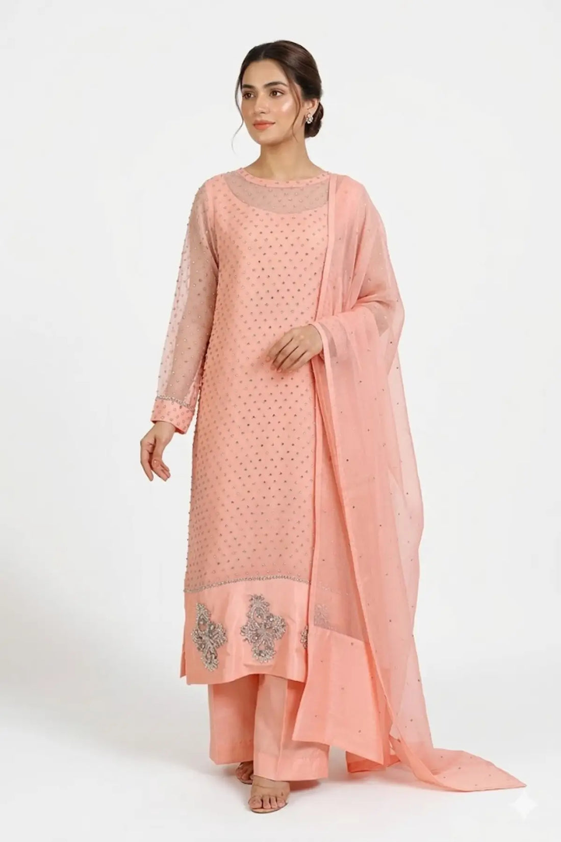 Roshanara – Peach Stitched Pakistani Wedding Formal Suit Shop Online