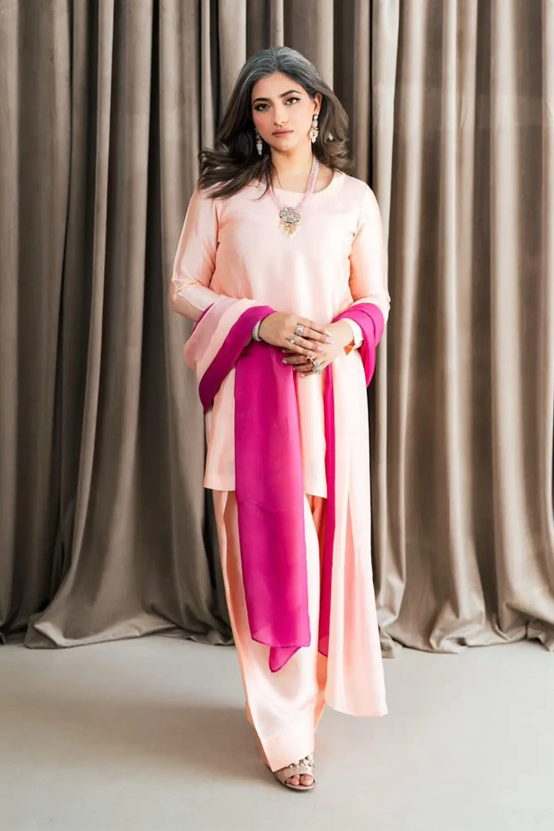 Haya - Elegant Powder Pink Sheesha Silk Suit with Embroidery and Dupatta