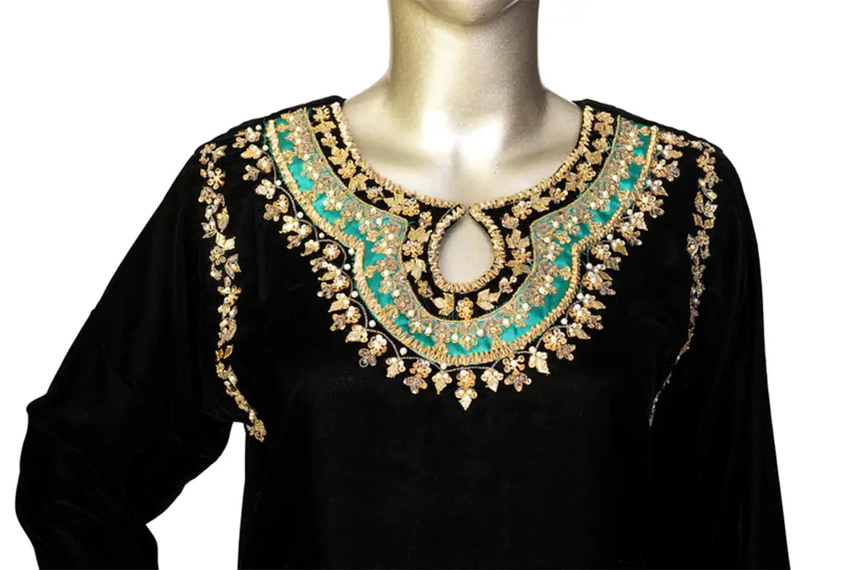 Black Radiance-Embroidery detailed velvet dress for Pakistani Parties