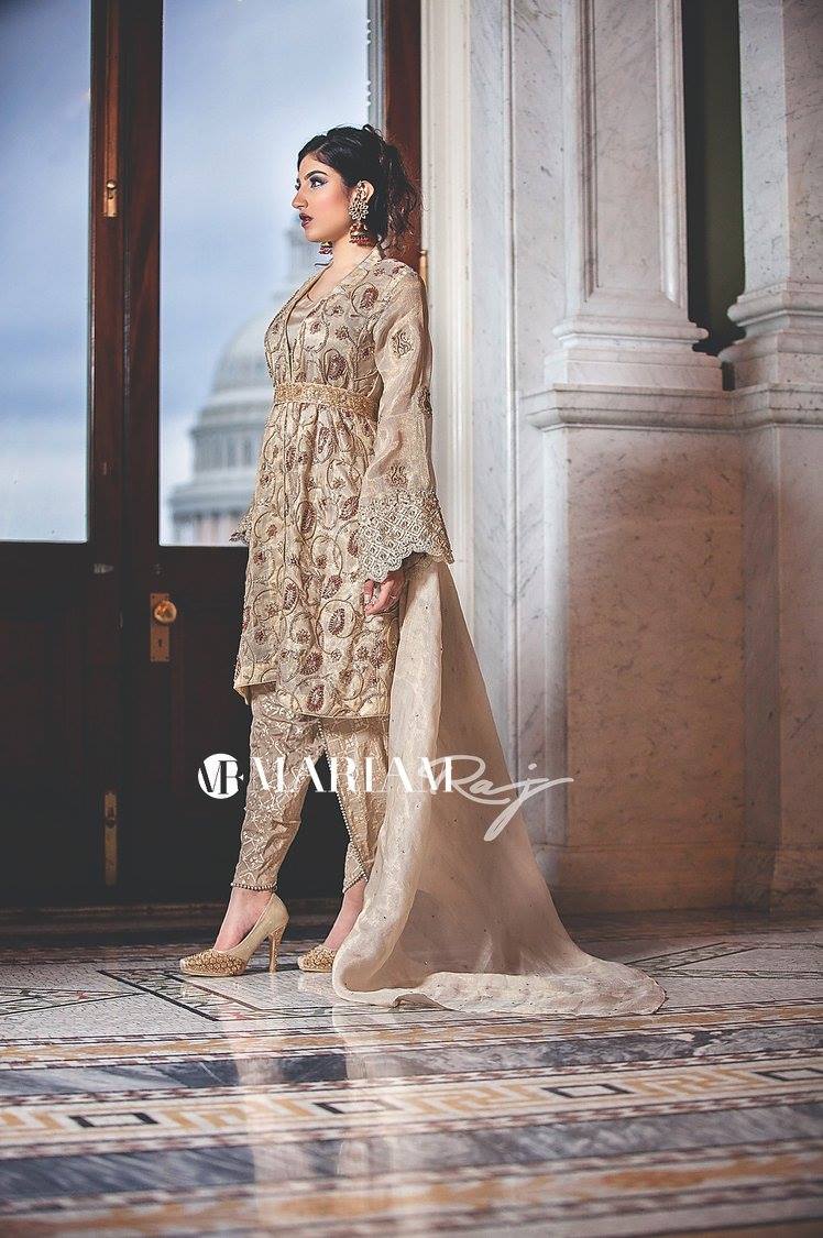Gold Dust- Pakistani Kundan Zari Short Frock with Shalwar
