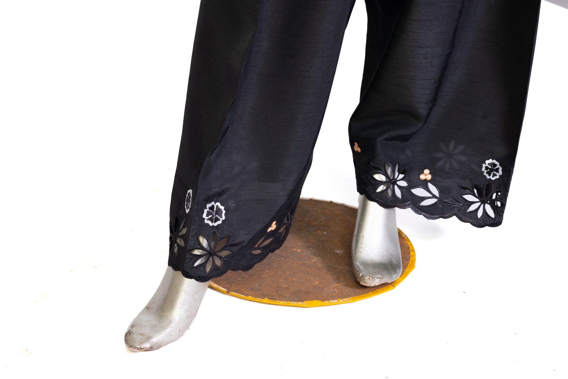 Exude elegance with Gul, a timeless black Korean silk outfit featuring multi-color embroidery that adds a touch of sophistication. The farshi shalwar enhances the traditional charm, making it a perfect choice for festive occasions and formal gatherings. Paired with a delicate organza dupatta finished with fine lace detailing, this ensemble is a true blend of heritage and modern luxury.
