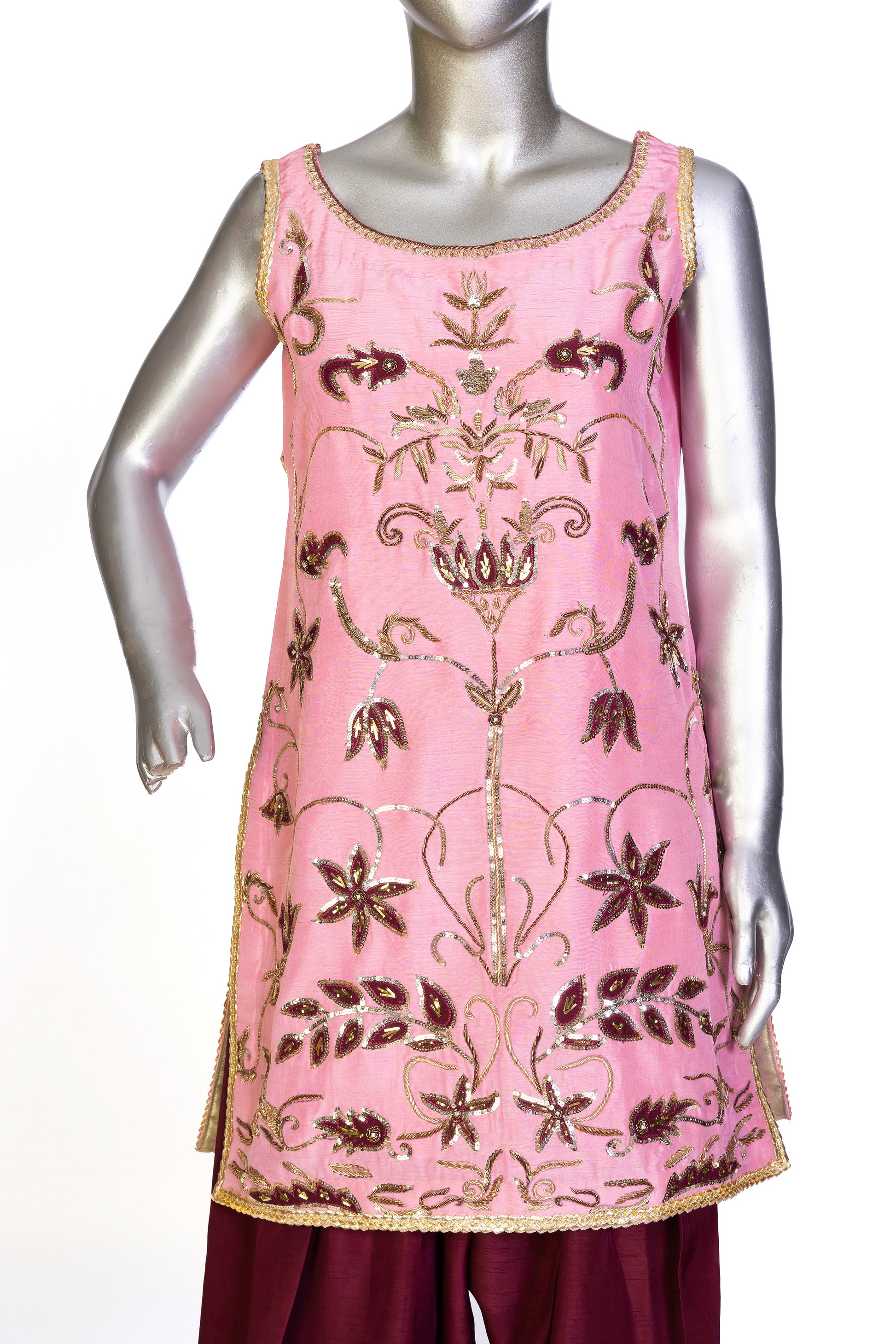 Noor– Traditional Farshi Shalwar Dress in Tea Pink & Maroon