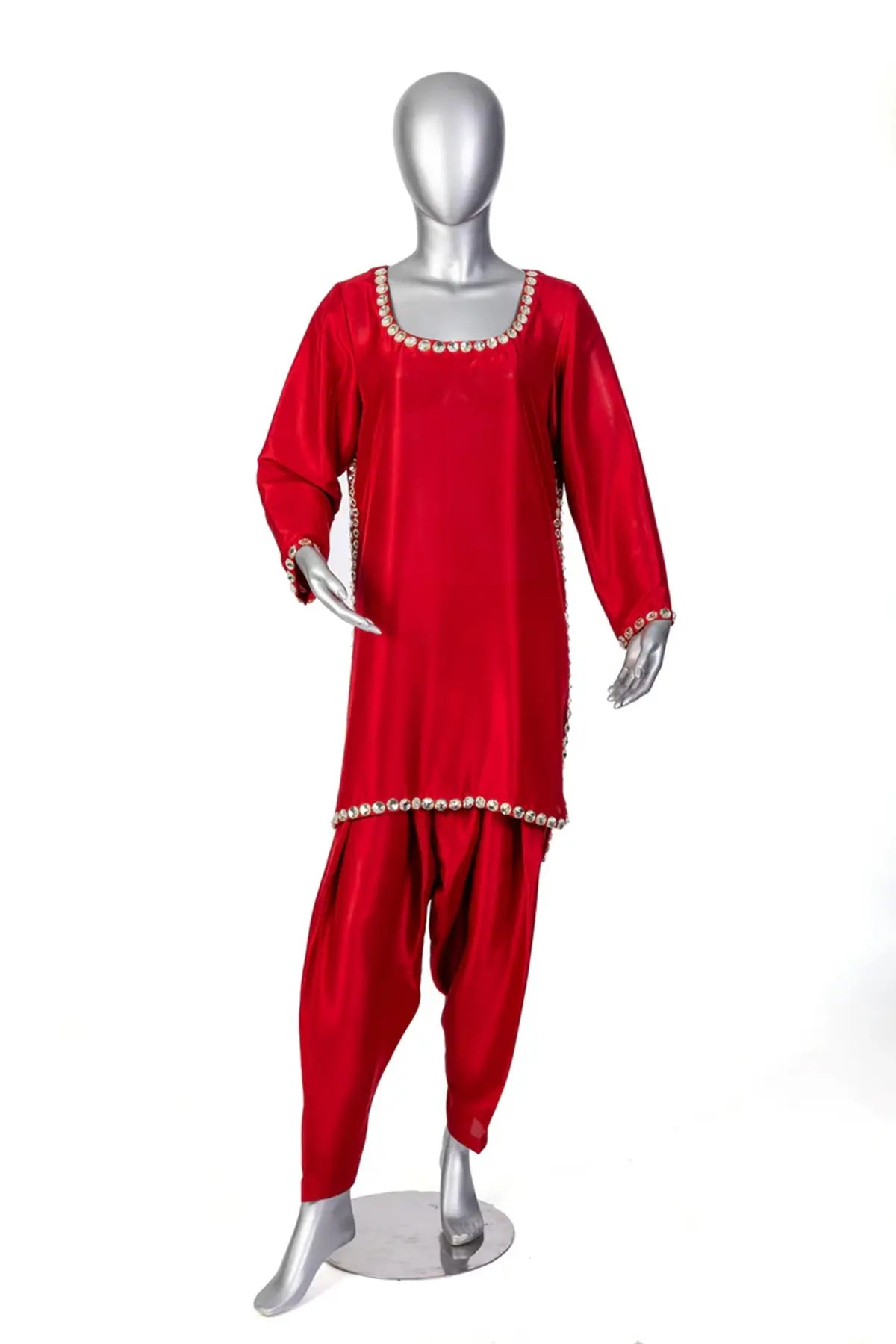 Sabeen – Elegant Handcrafted Red Silk Suit for Everyday Casual Wear