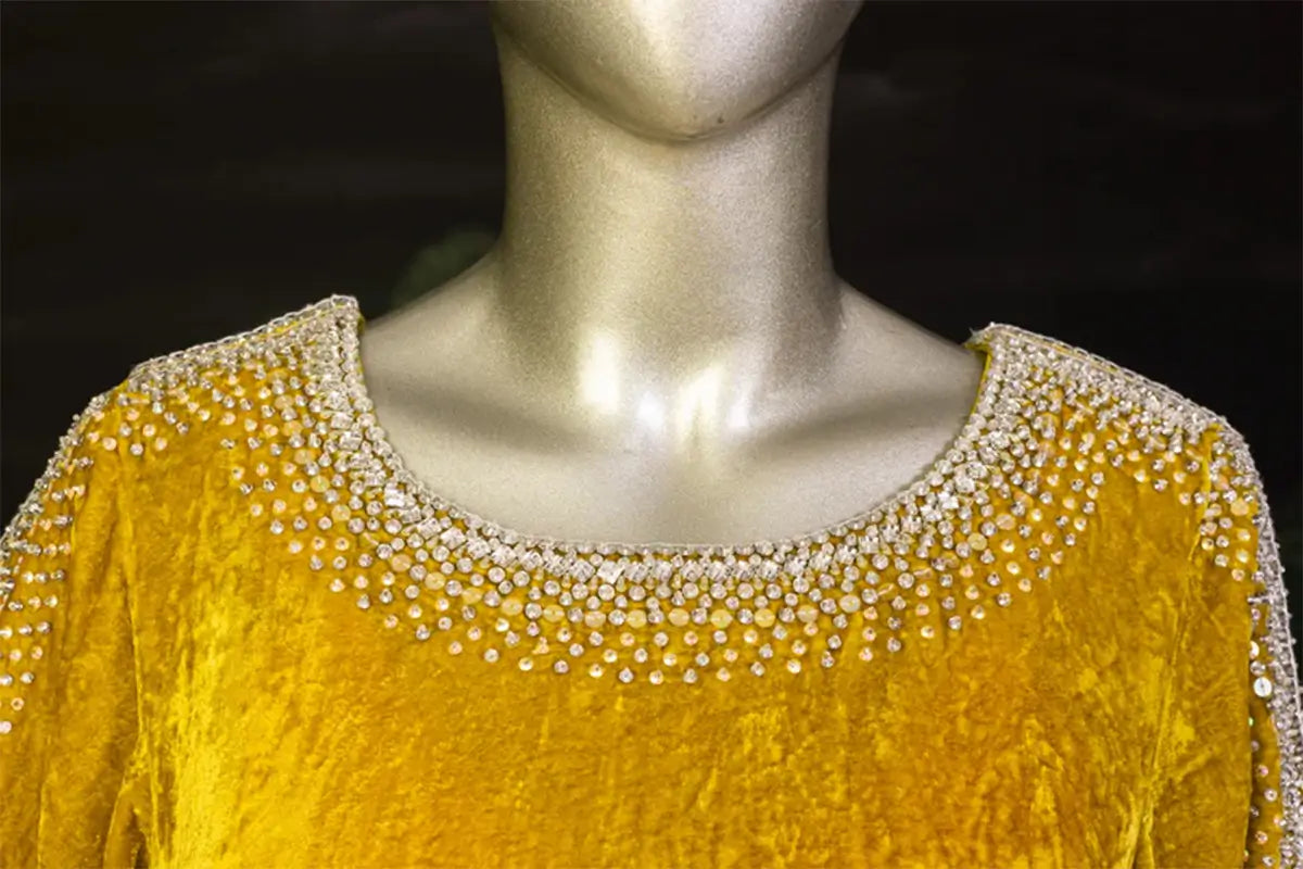 Saffron Glow- Embellished Velvet Straight Shirt Outfit
