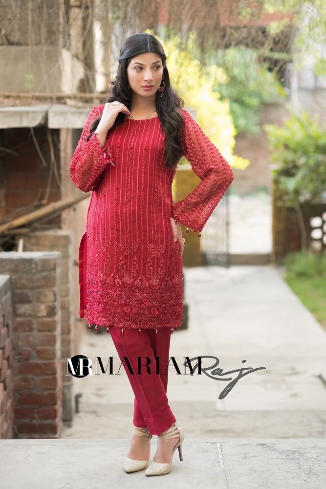 Scarlet Elegance-Pakistani Red Party Wear Dress